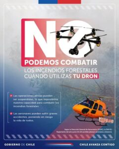IMPORTANTE | CONAF recuerda prohibición de usar drones durante el combate de incendios forestales.-