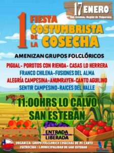 1era Fiesta Costumbrista de la Cosecha Sabado 17 de Enero 2026 en Lo Calvo.-